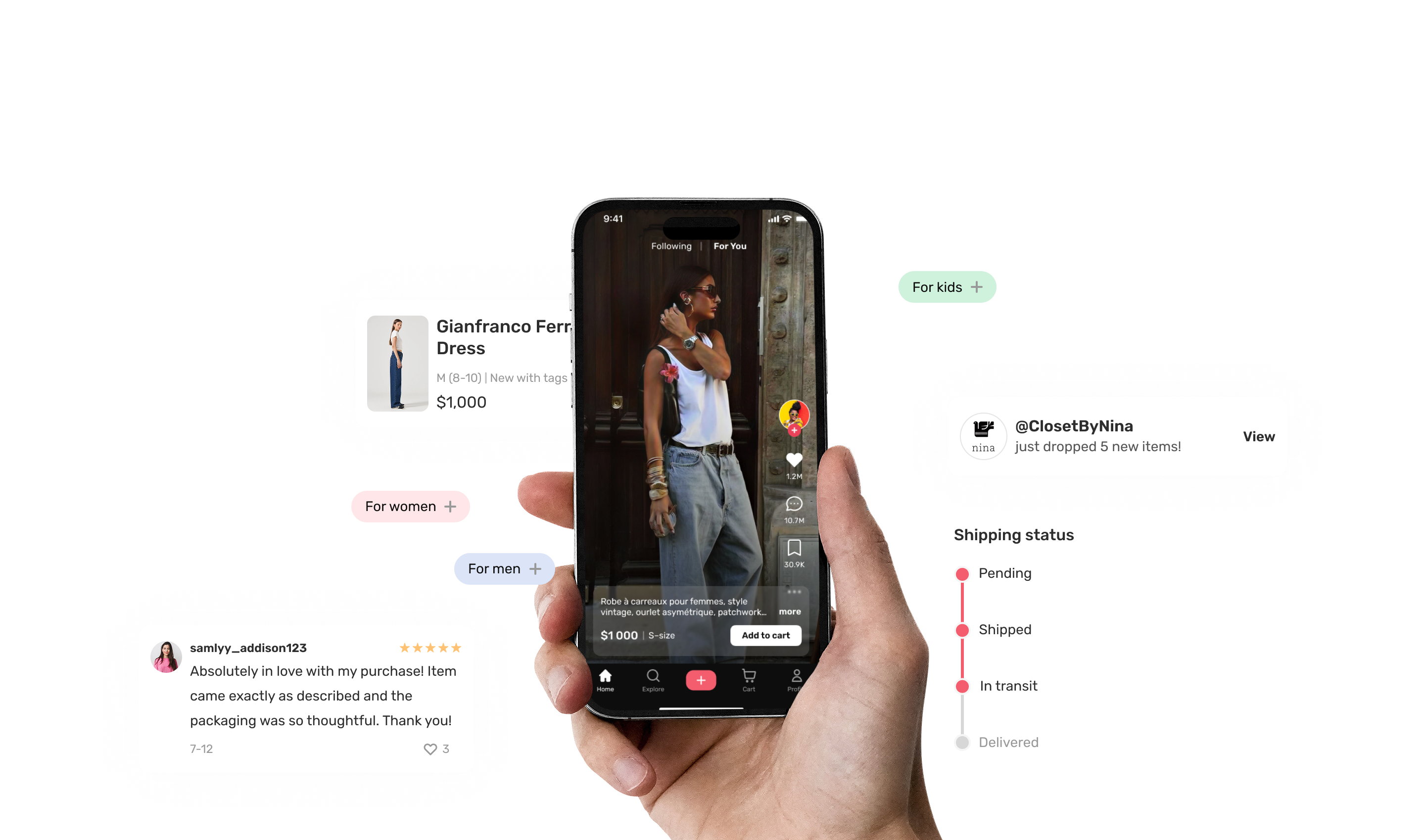 Purchase unique finds in seconds – watch reels, save your favorites, and check out with one tap.